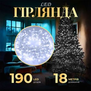 Гірлянда нитка світлодіодна GarlandoPro 190 LED лампочок 18м 8 режимів лед гірлянда Білий W400LEDW