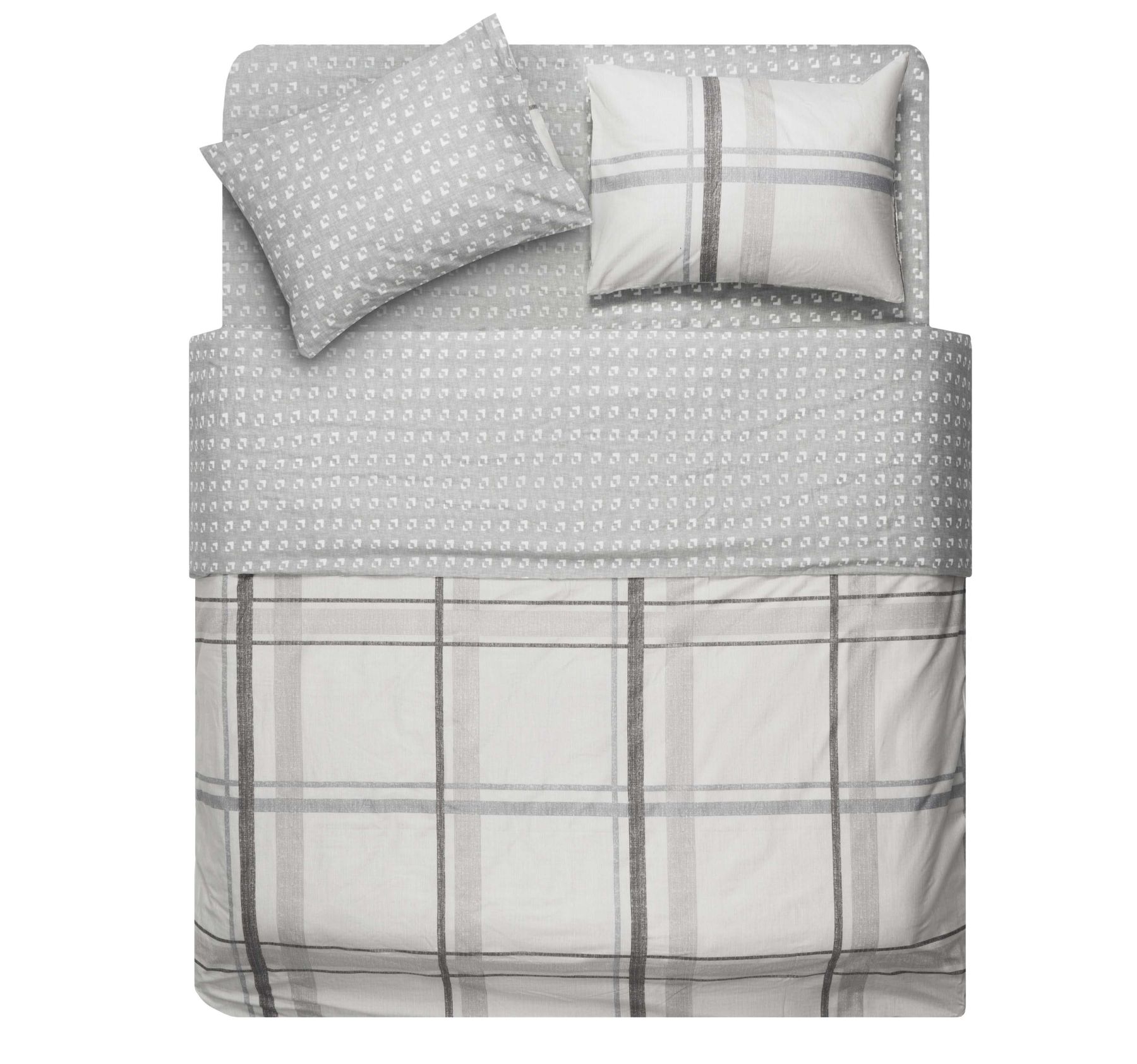 Bedding set ARDESTO 1.5 Gloria, sateen, сheckered, taupe, duvet cover160x220cm, bed sheet 160x220cm, pillowcases (2) 50x70cm, 100% cotton