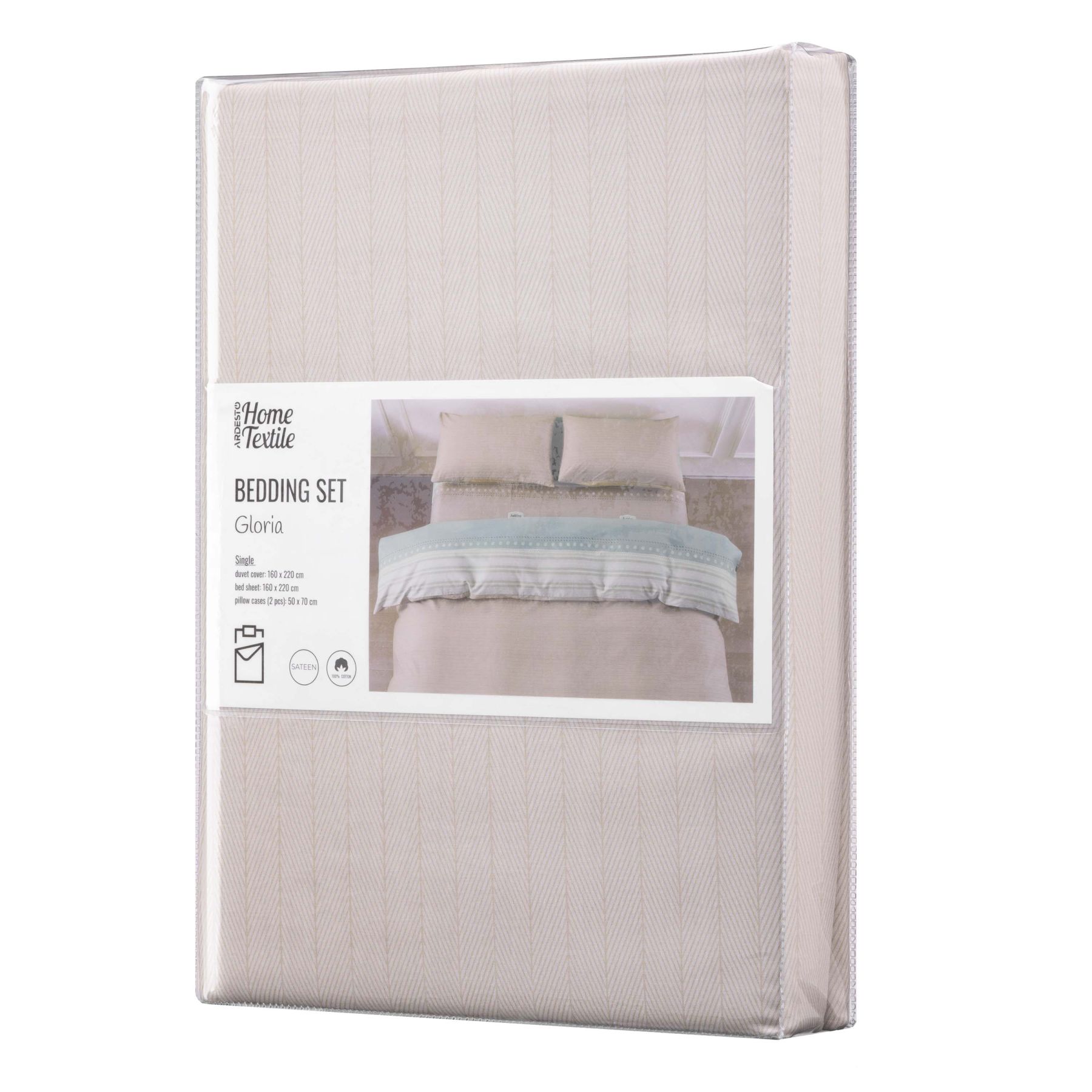 Bedding set ARDESTO 1.5 Gloria, sateen, stripes, brown, duvet cover160x220cm, bed sheet 160x220cm, pillowcases (2) 50x70cm, 100% cotton