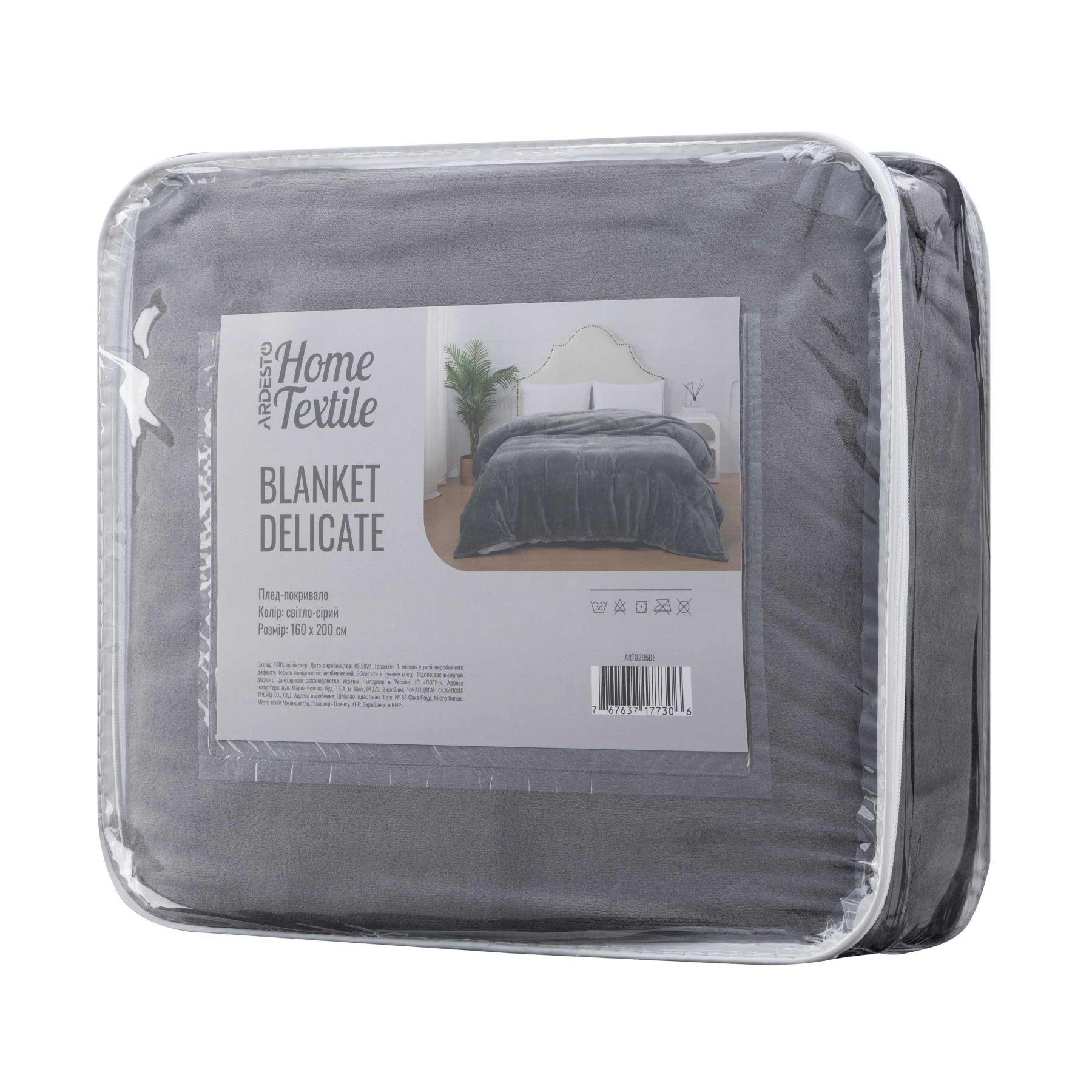 Delicate blanket ARDESTO 160х200cm, 100% polyester, light grey