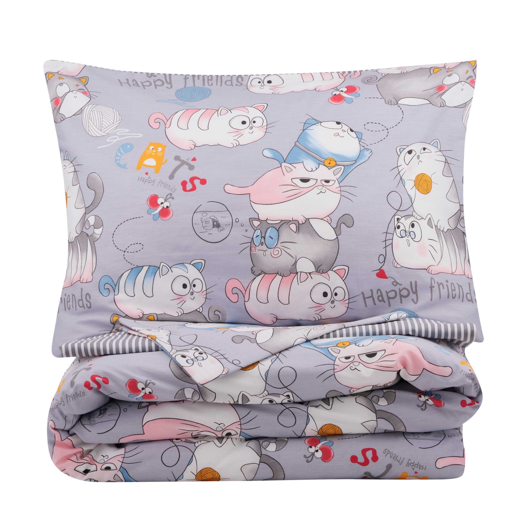 КПБ 1,5сп ARDESTO Gloria, підковдра 160х220см, простирадло 160х220см, наволочки (2) 50х70см, 100% бавовна, сатин, веселі котики, смужка