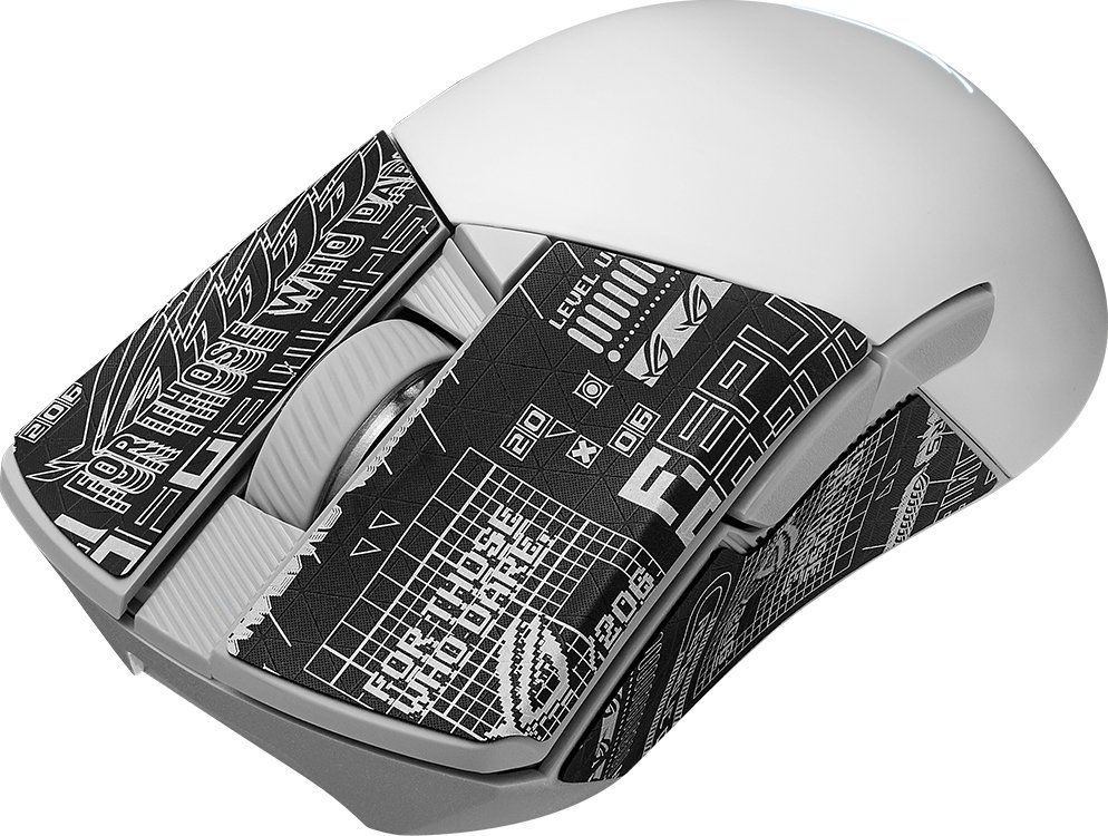 У комплект поставки входить стрічка для захоплення миші з малюнком ROG, яка попередньо нарізана. Просто наклейте її на Gladius III Wireless AimPoint, щоб краще тримати мишу і надати їй стильного вигляду.