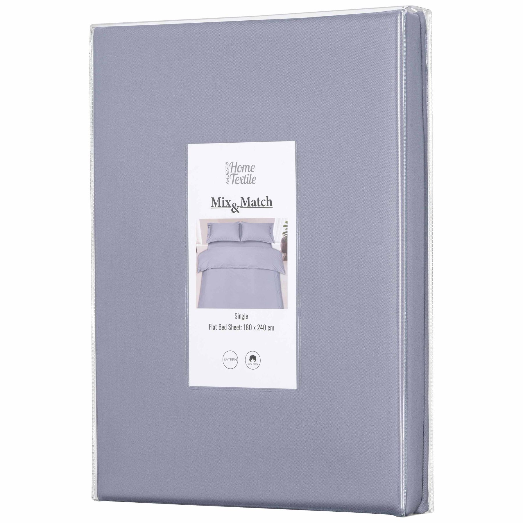 Простирадло ARDESTO Mix&Match, 180х240см, 100% бавовна, сатин, сірий