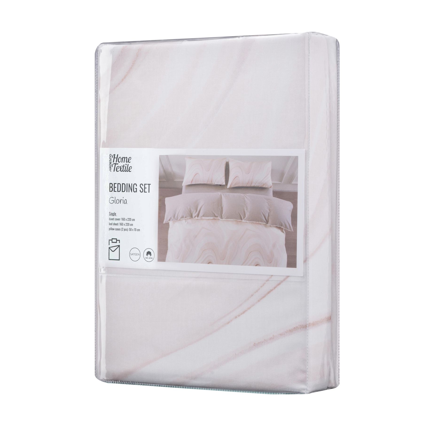 КПБ 1,5сп ARDESTO Gloria, пододеяльник 160х220см, простынь 160х220см, наволочки (2) 50х70см, 100% хлопок, сатин, мрамор, бежевый