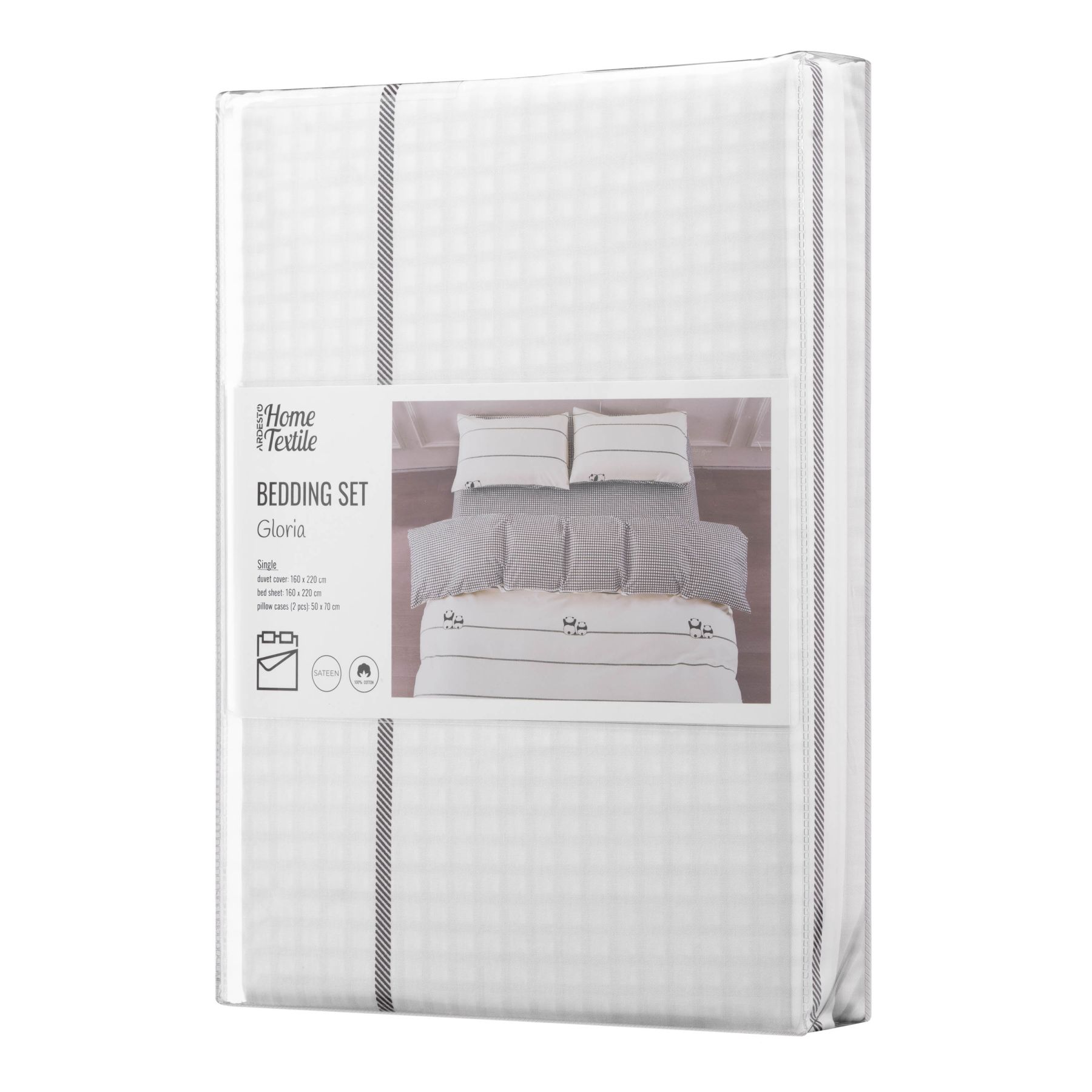 КПБ 1,5сп ARDESTO Gloria, пододеяльник 160х220см, простынь 160х220см, наволочки (2) 50х70см, 100% хлопок, сатин, панды, клетка