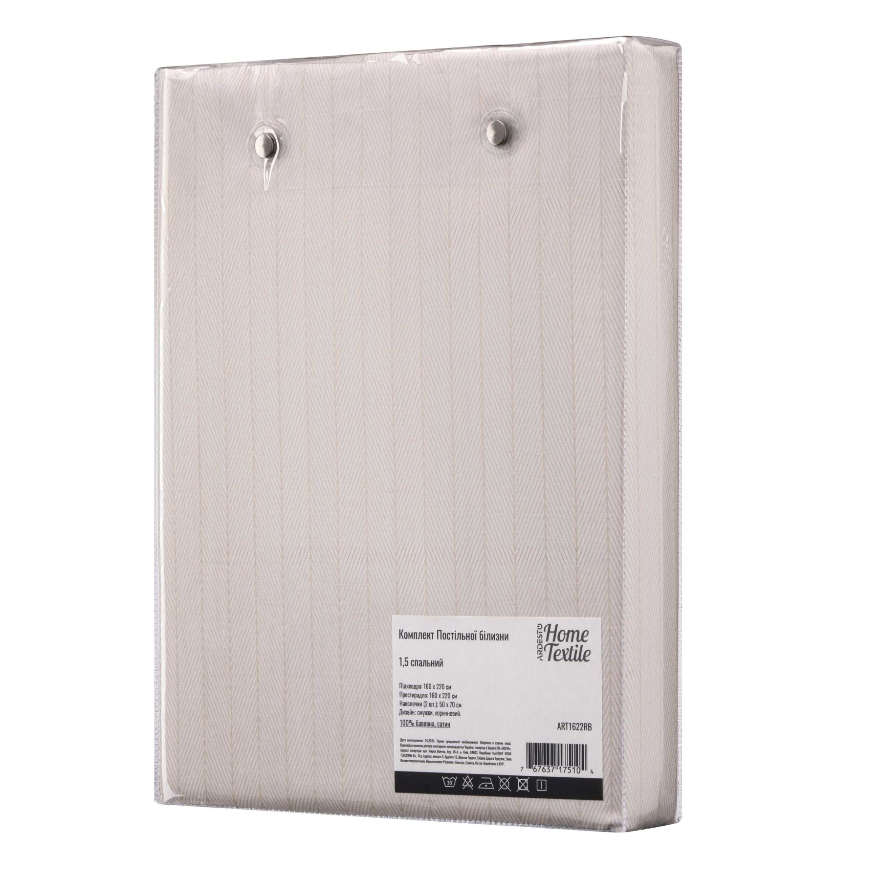 КПБ 1,5сп ARDESTO Gloria, пододеяльник 160х220см, простынь 160х220см, наволочки (2) 50х70см, 100% хлопок, сатин, полоски, коричн