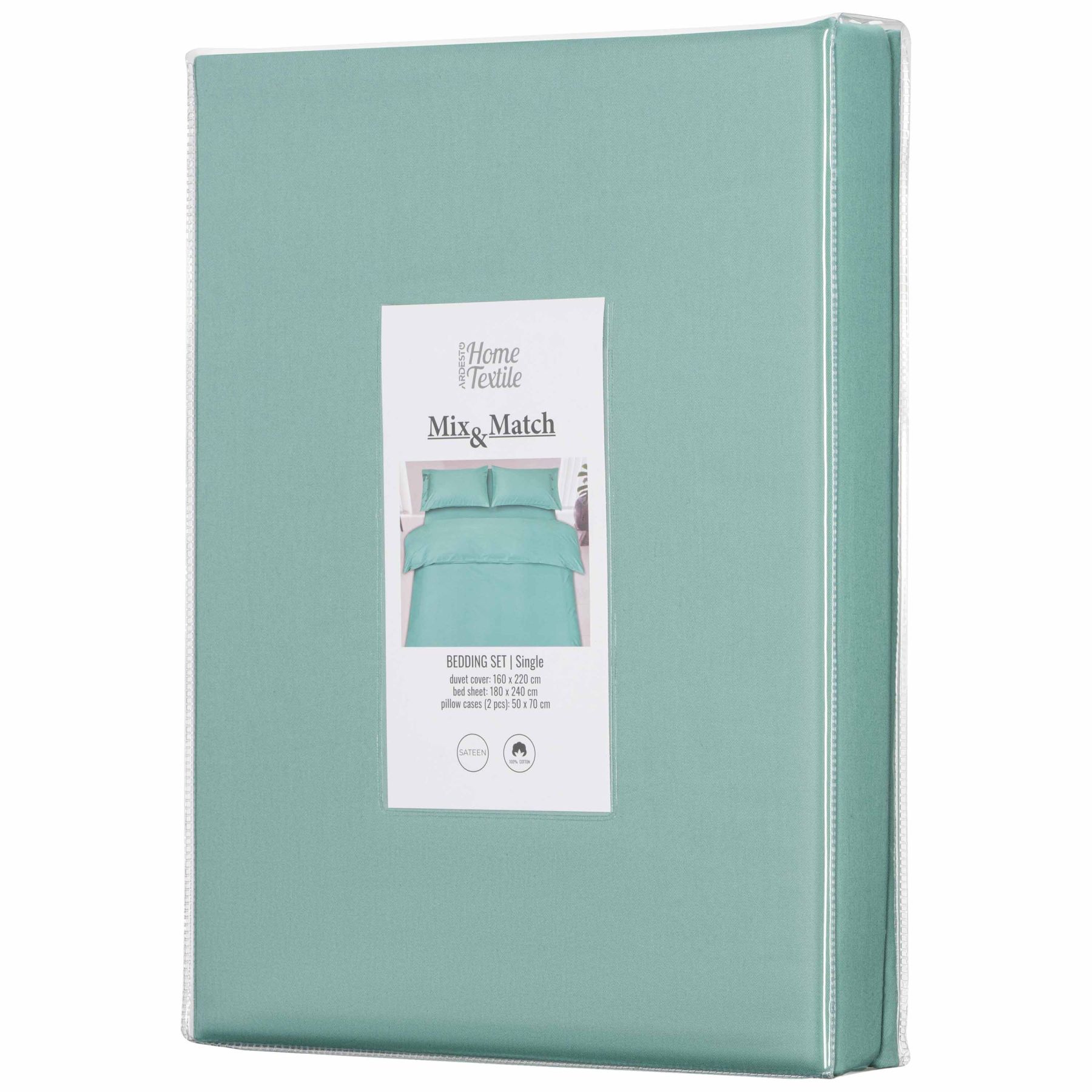 КПБ 1.5сп ARDESTO Mix&Match, пододеяльник 160х220см, простынь 180x240см, наволочки (2) 50х70см, 100% хлопок, сатин, зеленый