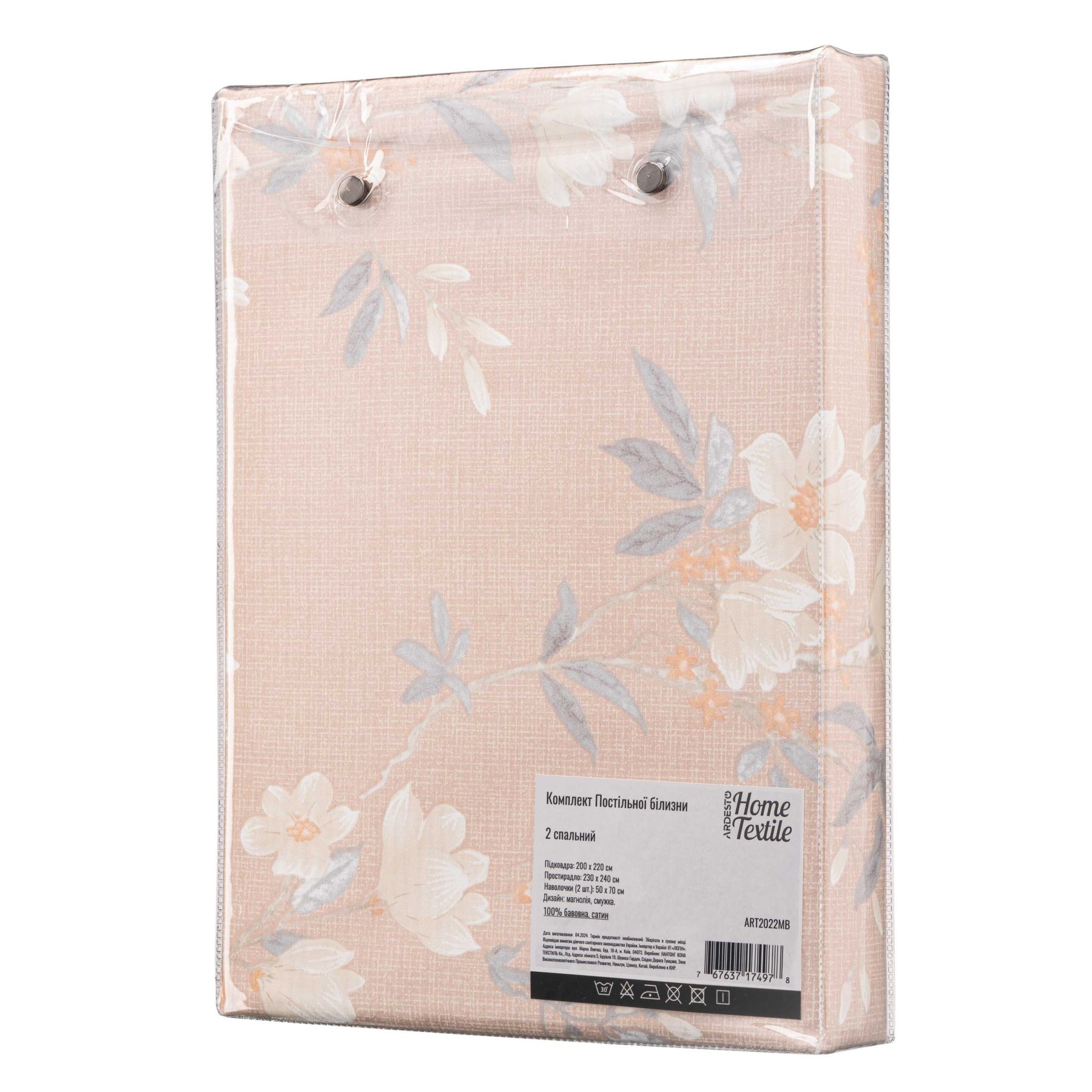 КПБ 2,0сп ARDESTO Gloria, пододеяльник 200х220см, простынь 230х240см, наволочки (2) 50х70см, 100% хлопок, сатин, магнолия, полос