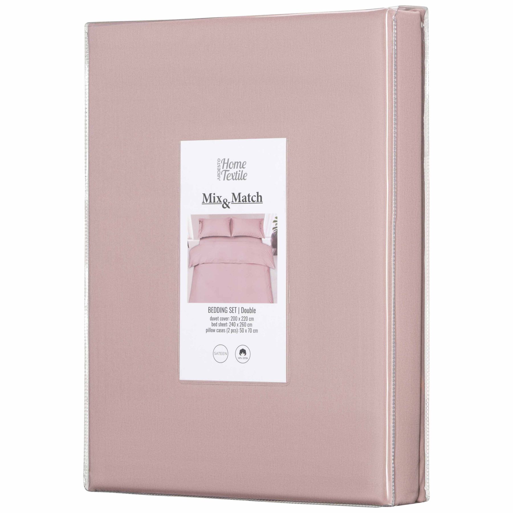 КПБ 2.0сп ARDESTO Mix&Match, пододеяльник 200х220см, простынь 240х260см, наволочки (2) 50х70см, 100% хлопок, сатин, розовый свет
