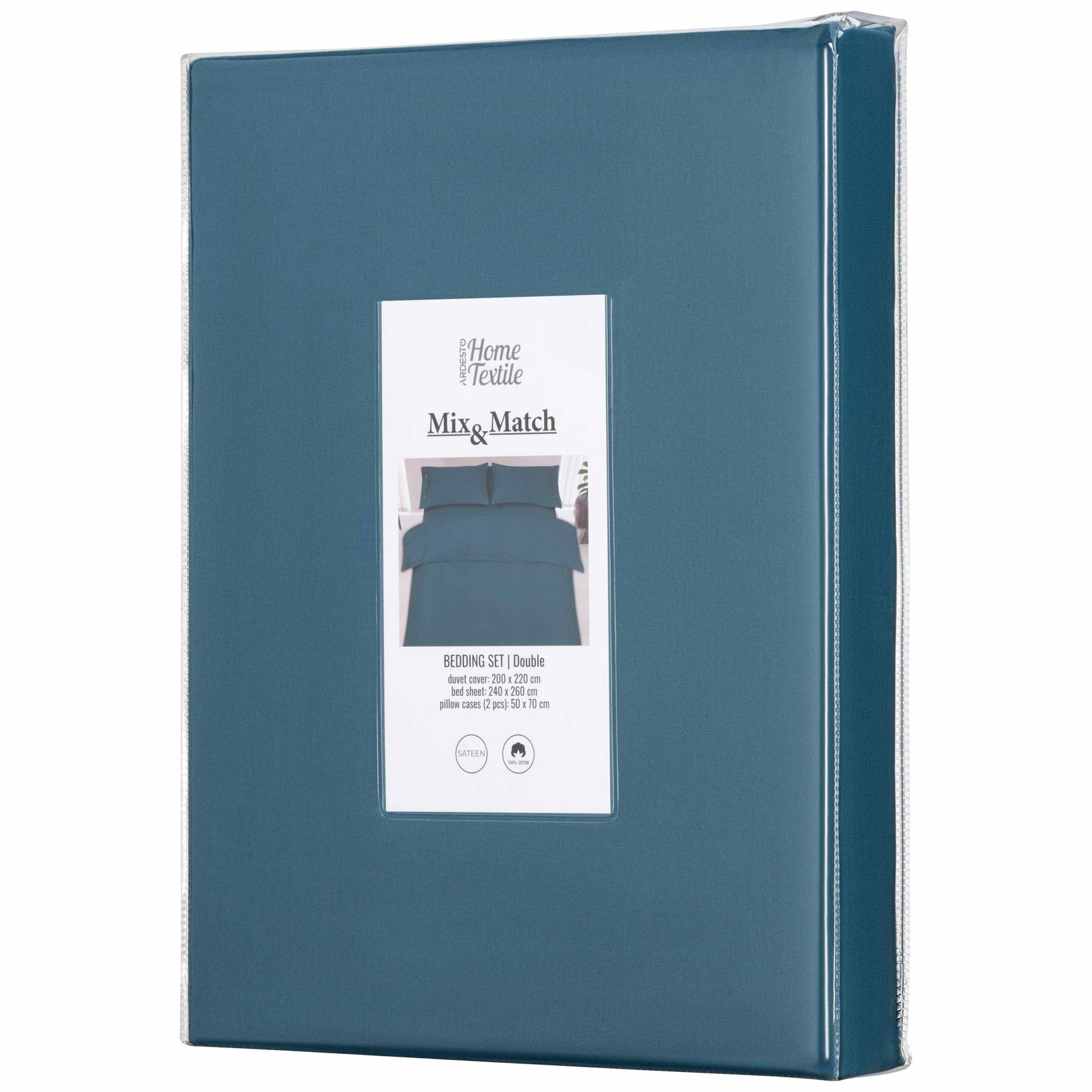 КПБ 2.0сп ARDESTO Mix&Match, пододеяльник 200х220см, простынь 240х260см, наволочки (2) 50х70см, 100% хлопок, сатин, синий