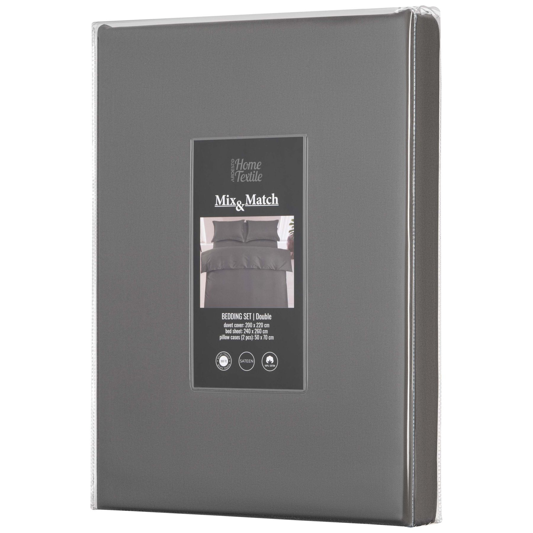 КПБ 2.0сп ARDESTO Mix&Match Premium, пододеяльник 200х220см, простынь 240х260см, наволочки (2) 50х70см, 100% хлопок, сатин, серы