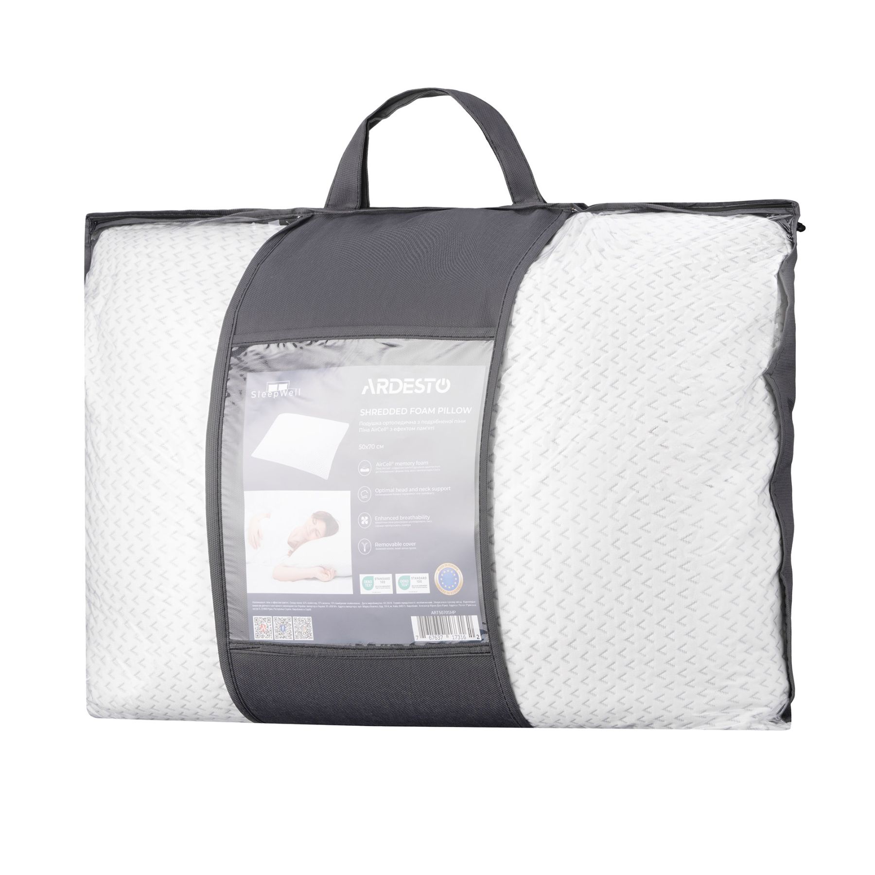 Подушка ортопедическая ARDESTO Sleepwell, 50х70см, прямоугольная, пена мемори, белый