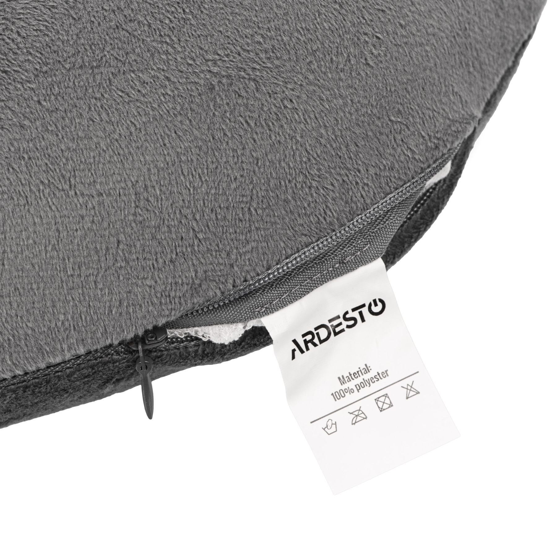 Съёмный велюровый чехол создаёт ощущение уюта. Благодаря застёжке-молнии его легко снимать и очищать, а прочный полиэстер обеспечивает долговечность материала. Серый цвет делает подушку универсальной и сдержанной в использовании.