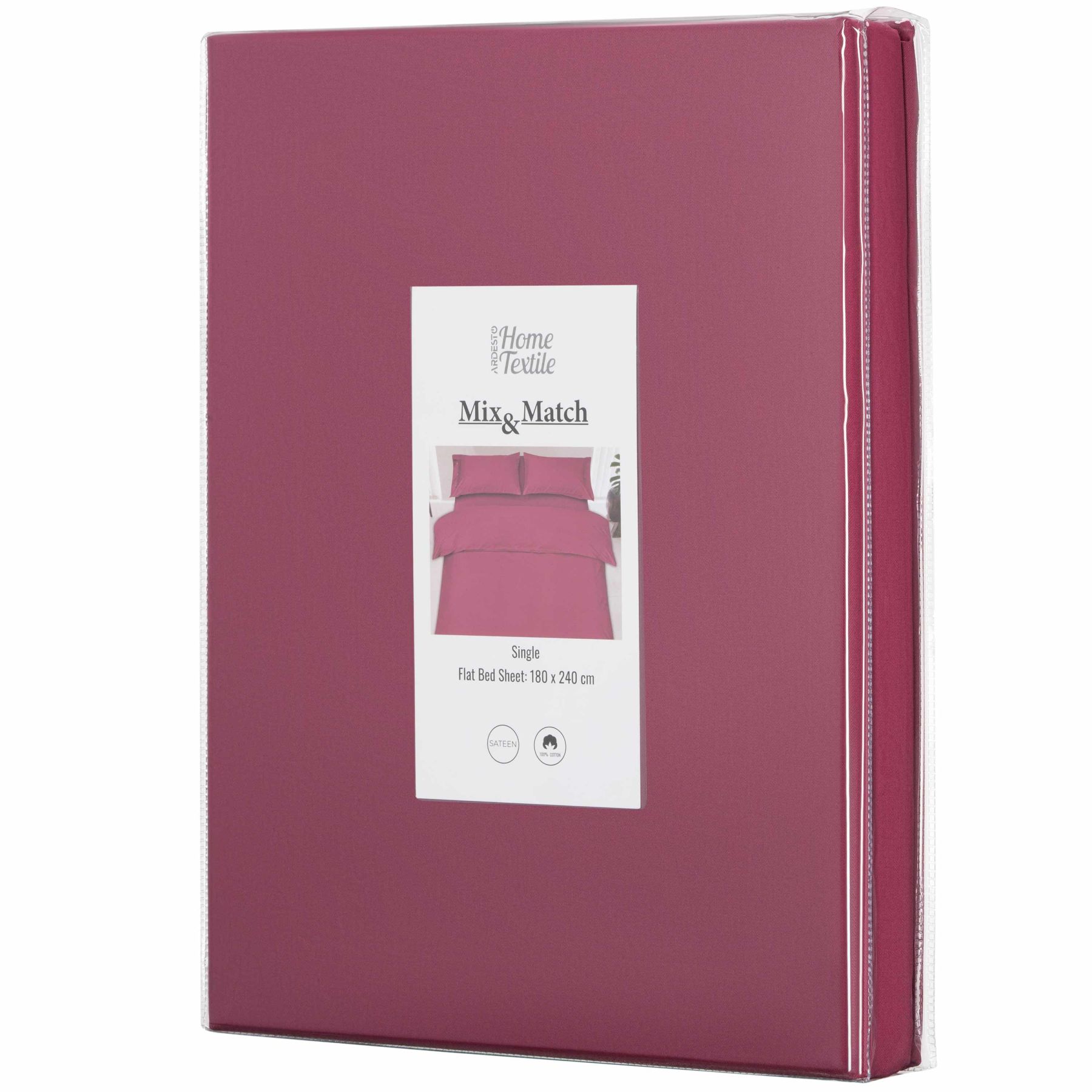 Простынь ARDESTO Mix&Match, 180х240см, 100% хлопок, сатин, бордовый