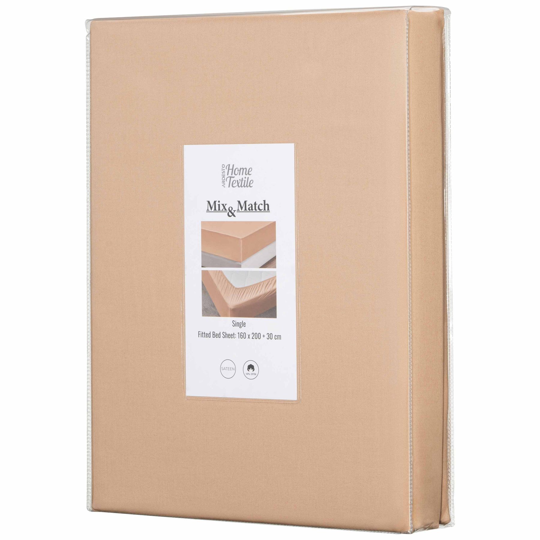 Простынь на резинке ARDESTO Mix&Match, 160х200+30см, 100% хлопок, сатин, бежевый