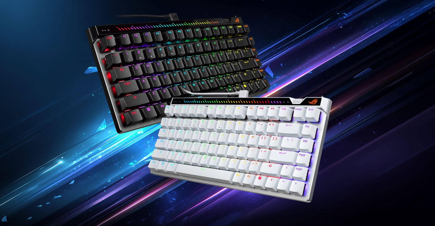 ROG Falchion Ace 75 HE — це еволюція популярної моделі Falchion Ace HFX у більш просторому 75% форматі з 83 клавішами (включає стрілки та додаткові функціональні клавіші). Ключова технологія — магнітні перемикачі ROG HFX V2 та V2X з підтримкою Rapid Trigger (миттєве скидання точки спрацьовування при відпусканні клавіші) та частотою опитування 8000 Гц (затримка 0,125 мс). Коліщатко дозволяє швидко змінювати точку спрацьовування (0,1–4,0 мм), чутливість Rapid Trigger та інші параметри «на льоту». Багатофункціональна кнопка + сенсорна панель керують гучністю, медіа, підсвіткою та макросами, а рядок LED над F-рядком показує поточні налаштування.